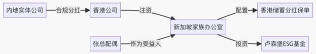 3、保单/基金收益通过家办向配偶分配效果:境内分红税负不变 + 境外投资收益适用香港/新加坡税制。
